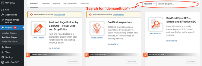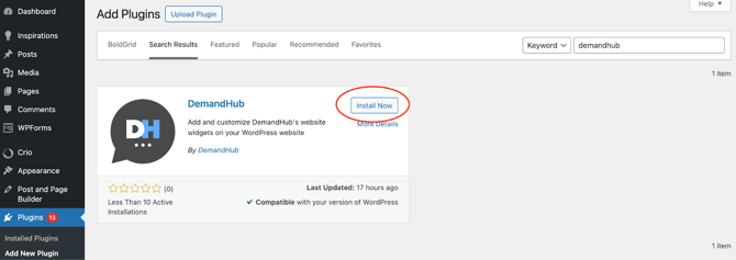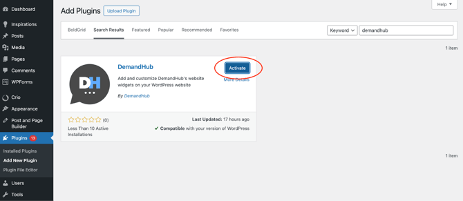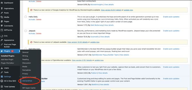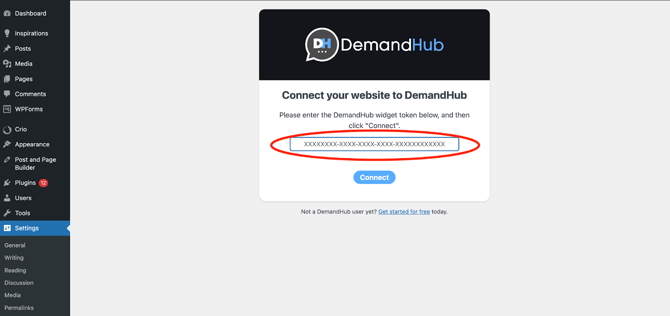 Once the plugin is activated, click on the “DemandHub” option in the “Settings” menu on the left.